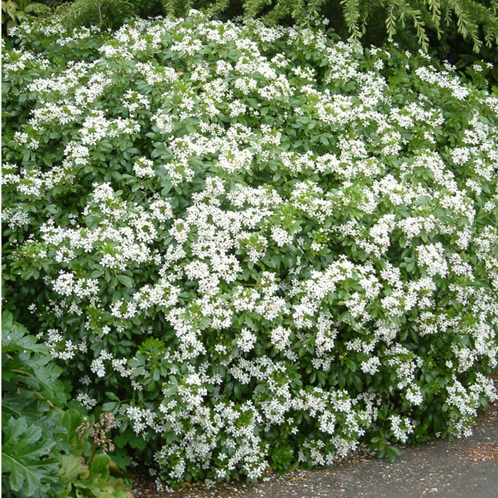 These are a bush, so good for filling/bulking up flower beds. They can grow quite large, but you can just prune them back. The flowers look a bit like Jasmine, and they have a nice scent too.