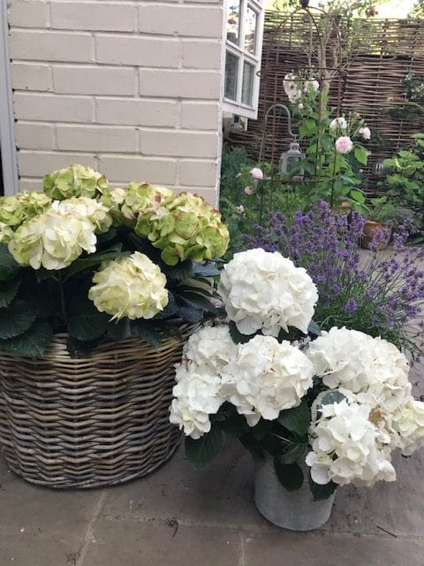 Now it’s no secret that I’m a  huge fan of the humble hydrangea, in all her colours and guises. Mostly because it’s almost idiot-proof, aka ‘hardy’. It thrives pretty much anywhere, hence the reason you see so much of it around, particularly in the UK. It doesn’t mind shade, and it loves rain! So if it’s not raining, it needs a lot of watering. I love the big, blousy blooms, and I love it in beds and in pots. Nicky is not as big a fan as me – I have to stop myself from picking one up pretty much every time I go to the M&S food hall!! My favourites are the white and the pink. We have an abundance of them, both in the front and the  back.