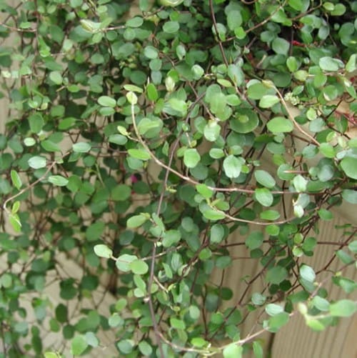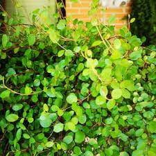 I have been a fan of Mulenbekia for a while now, after Nicky introduced it to me as a prettier, more delicate alternative to Ivy (which she hates, and is gradually completely phasing out of my life/garden!!). I have it in pots on the wall in the back garden, and Nicky wants to plant it at the front too. It looks great cascading down from pots/ledges etc. We are going to train it up the rusted iron grid trellis either side of the mirror in the front. I also have it planted in the bed in front of the mirror, next to the trough for the water feature.