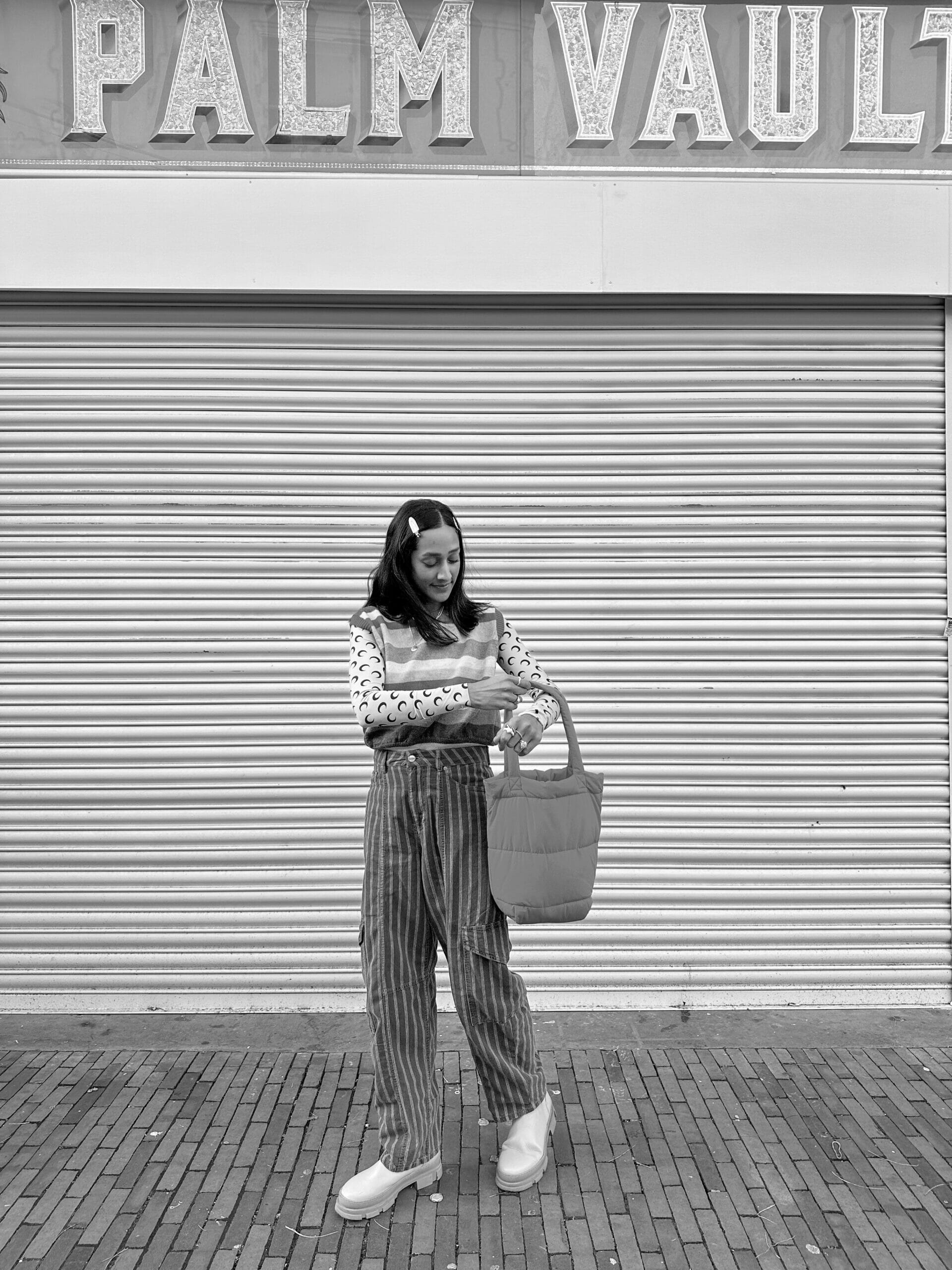 A pink and green striped co-ord from damson & madder, I can’t stop wearing it.